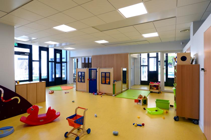 Le projet prévoit en complément des logements, la réalisation d’un multi-accueil, qui vient se greffer sur le bâtiment situé le long du mail dans sa partie sud assurant ainsi le lien entre les locaux RAM et accueil périscolaire existant et donc le regroupement de l’ensemble des services dans un pôle enfance cohérent et fonctionnel.