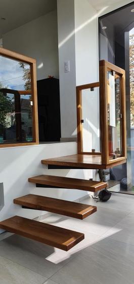Le volume de l’extension est largement vitrée pour profiter au max du jardin, un autre volume plus haut de quelques marches permet de s’approcher du niveau de la maison existante et crée un petit espace jeux pour les enfants.