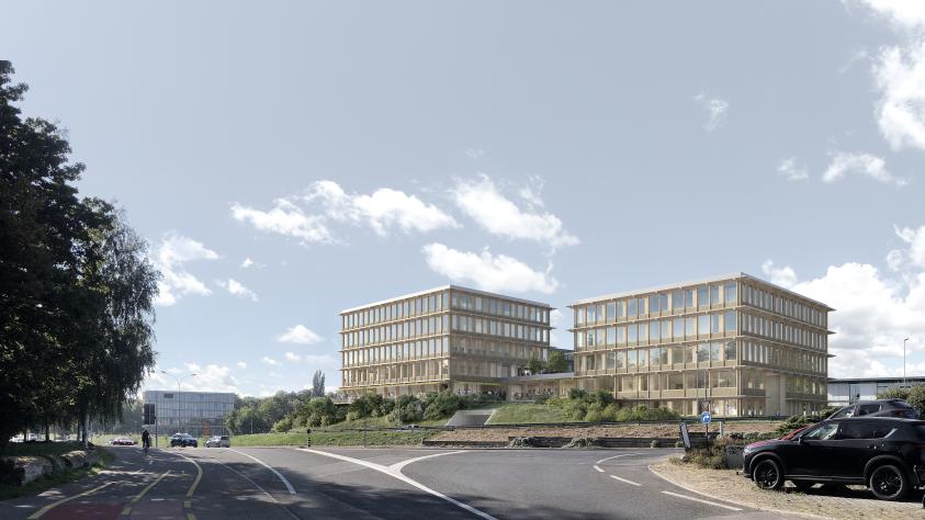 Le projet, par sa morphologie de deux plots, propose un double adressage, à l’Ouest sur la Chamberonne, faisant le lien avec le nouveau bâtiment du Synathlon, et à l’Est, formant place avec l’Extranef. Ces deux places sont réliées par une rue intérieure sur deux niveaux qui met en relation les différents programmes communs. Cet espace flexible permet la tenue d’évènements tout en favorisant les rencontres informelles.
