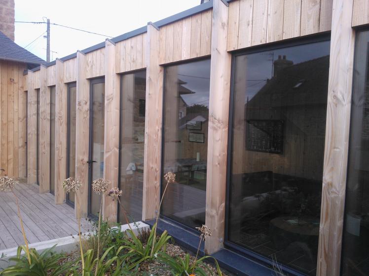 La seconde séquence est la création d'une extension résolument contemporaine ayant pour intérêt de donner une dimension de maison de famille à la modeste construction originelle. Cette extension s'installe dans un petit jardin clos sur lequel elle s'ouvre généreusement. Une véritable vie entre intérieur et extérieur pourra ainsi s'établir pendant la saison estivale, en toute intimité. Le séjour, baigné des belles lumières bretonnes et perpétuellement au contact de son environnement, sera également un bel espace de vie en commun tout au long de l'année. Les chambres prennent place en grande partie dans la maison initiale et conservent ainsi son charme authentique (volumes, vieux parquets…). Une chambre "nid" est créé dans le comble et permet, par ses nouvelles ouvertures, de bénéficier de vues vers la mer et de dormir la tête dans les étoiles…