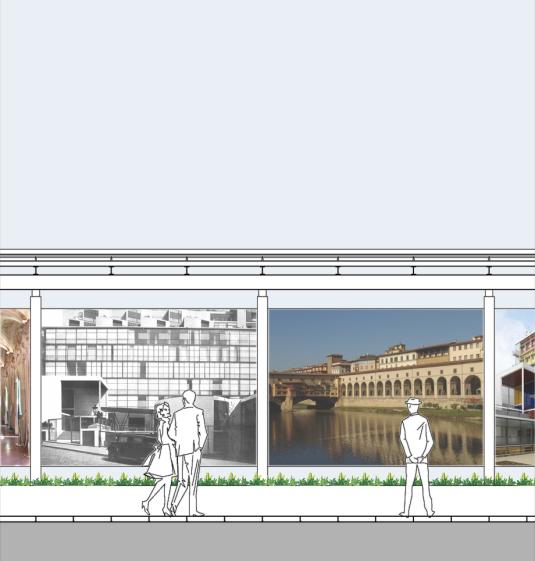 Le projet, étudié pour les hautes institutions italiennes qui partagent les espaces de l’hôtel de Galliffet à Paris, prévoit un Passage couvert équipé de bancs avec système de chauffage intégré à faible empreinte carbone, ceci pour en favoriser aussi l’usage pendant la saison d’hiver. Ce nouveau Passage permet l’installation d’expositions temporaires d’un côté et la valorisation de l’ouvrage d’art contemporain préexistant de l’autre côté: le Mur des Chants. Le Passage permet à la fois donc d’élargir, et même d’anticiper, au visiteur les prestigieux espaces d’exposition intérieurs dont l’Institut Italien de Culture est en charge et à la fois d’accomplir à la fonction urbaine d’ajouter un nouveau inédit chapitre à la trame historique des parcours piétons de la ville.