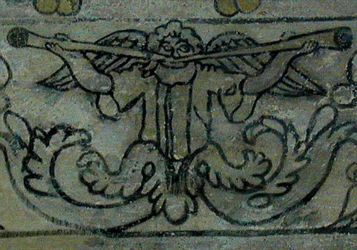 Les dégagements ont été effectués jusqu’aux premiers décors découverts. Après refixation et nettoyage, les lacunes fermées résultant souvent du piquage nécessaire pour faire adhérer un enduit postérieur, sont réintégrées. Ces interventions réalisées au trattegio, restent décelables à l’œil tout en participant au rétablissement de la gamme chromatique de l’œuvre.