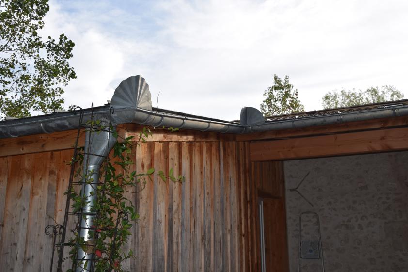 Suite à la réhabilitation du séjour en chambre à coucher avec salle d'eau, la maîtrise d'ouvrage a souhaiter réaliser une extension afin de créer un salon. L'ombre créé par l'orme ainsi que la vue sur la forêt de peupliers rend cet espace paisible et très agréable à vivre. L'extension est entièrement réalisée en structure bois, l'isolation en laine de bois. Les matériaux des façades furent pensés en fonction de l'orientation, le Nord en Zinc Pigmento Rouge, l'Ouest en Red Cedar brut, le Sud en enduit à la chaux. La façade Sud arbore un volet coulissant ajouré, fait de lames de Red Cedar brut.