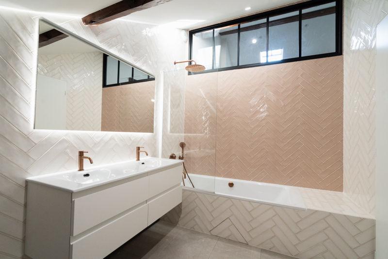 Le projet, intégrant une liaison avec le nouveau volume à investir, remanie les circulations internes, la distribution des pièces La rénovation de l'appartement propose de plus grands espaces cuisine, suite parentale....