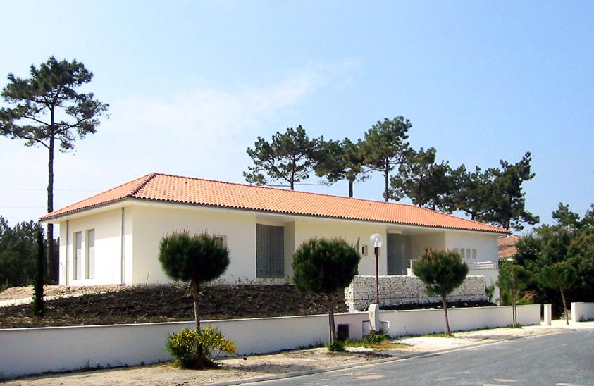 Le terrain constructible est situé sur le promontoire du Cap Ferret, directement derrière la dune sur l'océan Atlantique. Suivant la topographie, l'accès au bâtiment par la rue a été conçu comme un socle qui disparaît dans la pente. Une implantation fine permet à la fois de dégager un sous-sol confortable et de protéger la partie habitation des vues de proximité. Profitant de la longueur du terrain, une toiture en porte-à-faux définie un plan horizontal sous lequel les différents volumes viennent se loger de plain-pied, reliés entre eux par des murs en blocs de verre courbés. Un travail de percements, de rythme, de contraste anime les volumes et évoque les espaces intérieurs derrières les murs blancs. Les grands espaces de vie intérieurs se déversent les uns dans les autres et sont étroitement liés à l'espace extérieur et au paysage environnant. Le bâtiment est entouré d'une cour protégée, dans laquelle il y a un grand espace en plein air et une piscine.