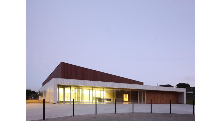 Construction d’un gymnase / Saint Sébastien sur Loire - BET: Beterem, CIAL - Année d’études: 2012 / 2013 - Année de réalisation : 2013 / 2014 - Projet Lauréat d’un concours d’architecture - Surface: 1 650 m² Le projet s’implante sur un site en forte déclivité, dans un environnement pavillonnaire proche. L’équipement construit le front de la placette et apparaît comme un espace de transition à la croisée des quartiers portant un regard sensible sur la question du paysage à l’échelle de la commune. Il développe les parcours urbains de la ville dans une composition graduée, véritable corridor écologique qui rejoint le système hydraulique sensible de ces îles Ligériennes. Architecture et paysage se révèlent alors dans une même cohérence.