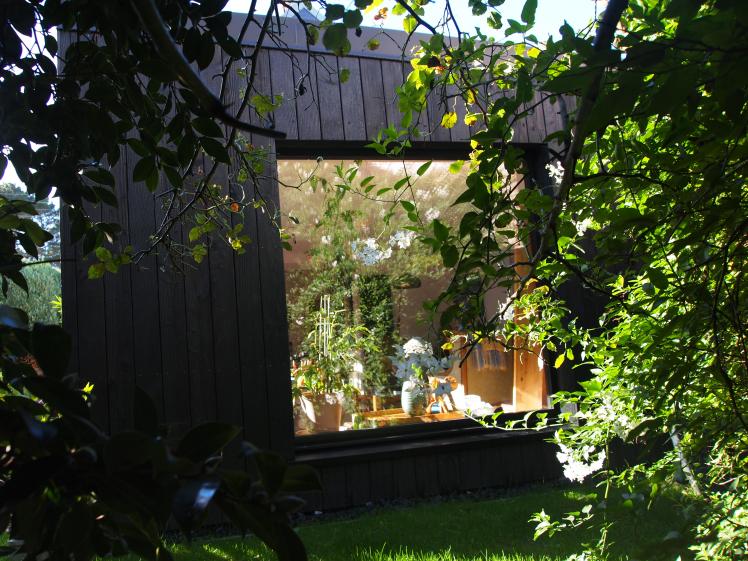 La maison existante disposaient en rez-de-chaussée de pièces accolées les unes aux autres sans cohérence. Dans le projet, les circulations et les fonctions sont complètement retravaillées permettant de clarifier les espaces et fluidifier les circulations. Des percements et perspectives nouvelles sont créés notamment entre le séjour et la cuisine. L’extension dans le prolongement de l’existant en structure légère vient se fondre dans le jardin. Le bardage en bois brulé Douglas huilé de couleur sombre mate outre le fait qu’il soit plus durable s’intègre dans la végétation et le palmier qui a pu être conservé. L’extension avec ses deux grandes ouvertures au sud et à l’est apporte la lumière qui manquait aux pièces de vie.