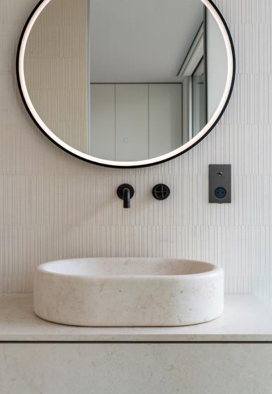 Le projet, sobre, est piloté par la course du soleil : la forme du bâti est défini selon la trajectoire solaire au fil de la journée ainsi que les usages qui en découlent au sein du foyer. Intégrée dans son environnement, la maison exprime un langage architectural contemporain où dominent le béton et le verre.