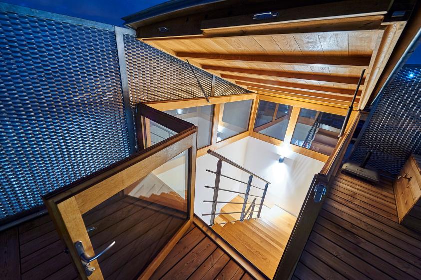 Se déployant à la verticale les nouveaux bâtiments sont construits en CLT, un contre collé de bois massif, qui privilégie une filière courte, propose un mode de construction alternatif et permet de construire une boîte de bois dans la boîte de pierre. Chaque habitation bénéficie d’un accès au toit-terrasse. Traité comme une cinquième façade cet espace extérieur partagé permet à la fratrie d’avoir un « jardin » sur une parcelle étroite. L’association en autopromotion des frères et soeur a permis à la fois :