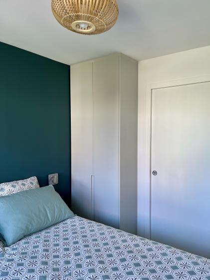 Cet appartement de 28 m², situé dans un immeuble des années 70 à Annecy, était dépourvu de chambre et disposait d'une cuisine séparée. Il a été entièrement transformé et rénové afin de créer une chambre séparée et d'intégrer un espace cuisine ouvert sur la pièce à vivre.