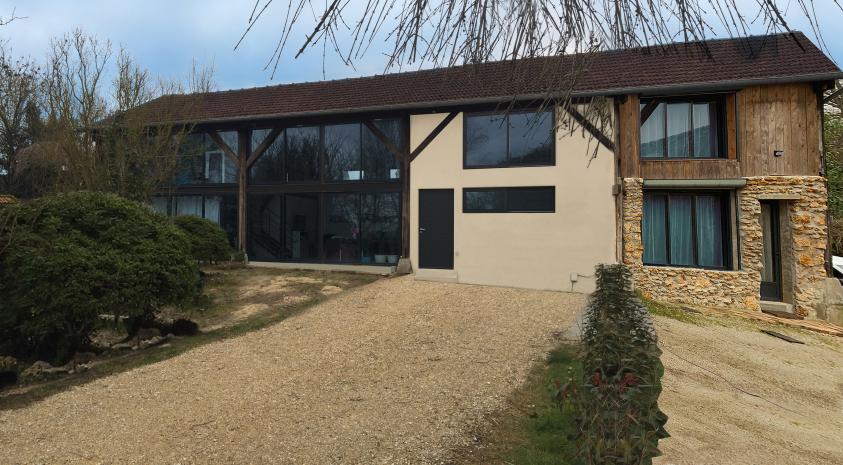 Création d'une maison individuelle dans le volume d'un Hangar existant avec Mise en conformité des travaux, reprise du projet avec suivi de chantier et dépôt d’un PC pour régularisation avec négociations en Mairie, maison aménagée dans l’enveloppe d’un Hangar existant, programme d’une maison de 3 chambres avec buanderie, création de 131 m² SDP, avec un niveau en mezzanine, réaménagements intérieurs, reprises en façades et adaptations des aménagements extérieurs, en cours...