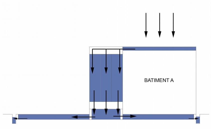 La conception s’appuie sur une très large réutilisation des batiments existants. L’intégration d’un système exemplaire dans la gestion naturelle des eaux fait de l’écomusée un outil pédagogique à part entière. Avant d’être rejetée dans le réseau commun, l’eau récupérée en toiture est stockée dans les anciens silos et traitée dans trois bassins végétalisés.