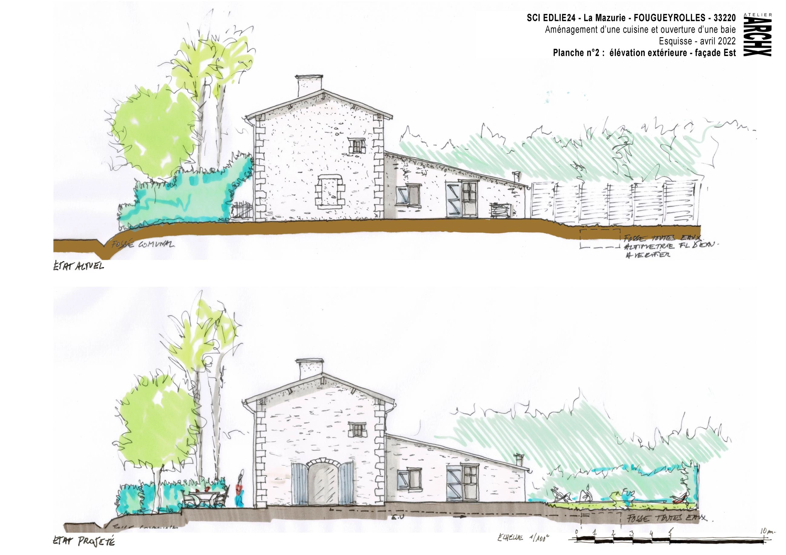 Le projet a été de recomposer intégralement la pièce en ouvrant une large porte fenêtre donnant sur le jardin à l'Est, d'une part, et en uniformisant le fond de la pièce par la création d'une façade lisse et continue, d'autre part.