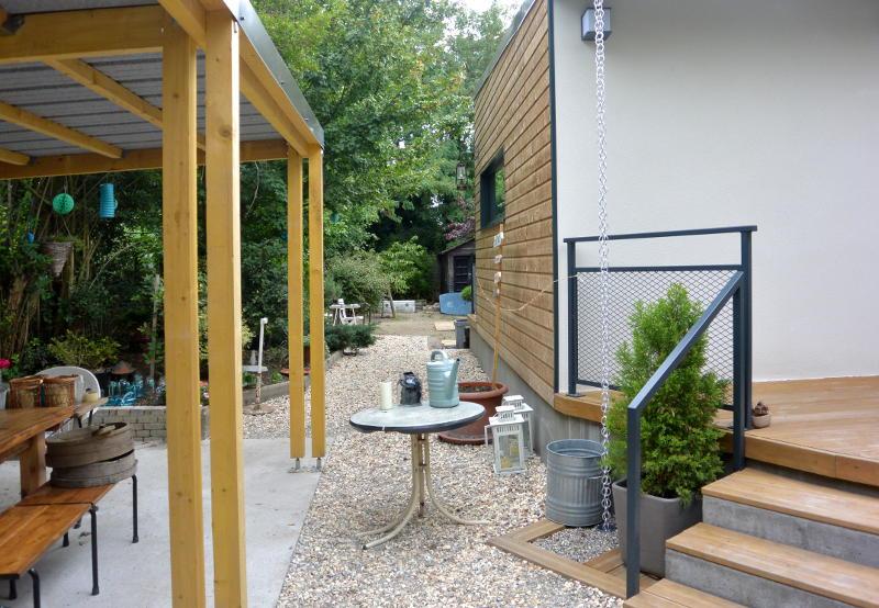 Dans cette petite maison de ville bénéficiant d'une cour à l'avant et d'un véritable jardin à l'arrière, le projet a permis d'agrandir et de retourner les pièces de vie vers les espaces extérieurs tous redessinés en lien avec l'extension.